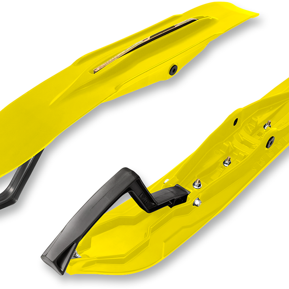 Caracteristicas: Keel designed to reduce steering effort and darting Raised rear portion Integrated bridge makes installation quicker while providing extreme rigidity Pre-drilled holes for easy installation of runners 5.5" W; weighs approximately 4 lb. Sold in a complete kit that includes two Rush skis, two ski adapters, two J-edge runners with 60? carbide and two black handles