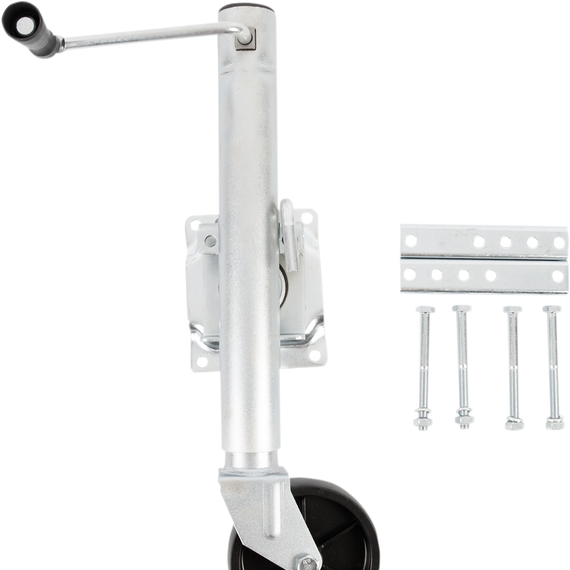 Caracteristicas: 1,500 single-wheel 6" swivel for easy maneuvering Lifts from 14" to 24" Fits up to 3" x 5" trailer tongue Easy toggle when pulling pin Protective finish for corrosion resistance Mounting hardware included