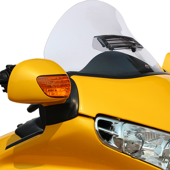 Caracteristicas: Wind-tunnel tested and proven performance Reduces annoying wind buffeting Adds stability to the front of the motorcycle by generating downforce at speed Manufactured from dual-side hard-coated polycarbonate material for outstanding impact strength Honda GL1800 Gold Wing applications retain factory height adjustment All styles install using OEM hardware GL Vented Flare uses the stock vent (vent not included) Made in the U.S.A.