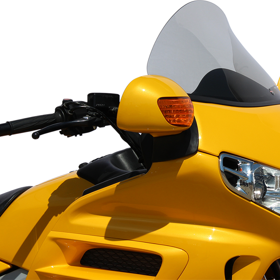Caracteristicas: Wind-tunnel tested and proven performance Reduces annoying wind buffeting Adds stability to the front of the motorcycle by generating downforce at speed Manufactured from dual-side hard-coated polycarbonate material for outstanding impact strength Honda GL1800 Gold Wing applications retain factory height adjustment All styles install using OEM hardware GL Vented Flare uses the stock vent (vent not included) Made in the U.S.A.