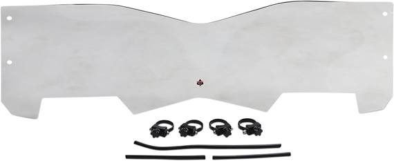 Caracteristicas: Constructed from hard-coated polycarbonate the same material used to create bulletproof windows Provides the wind/debris protection you need without sacrificing your ability to see Innovative Flare Windshield design features hips at outer edge of shield that re-route air; and a flip at the top is designed to kick the air up and back to deliver clean, less turbulent air for driver and passenger Unlike flat shields that don't work if they are too low or loss of visibility if it's too high, you'll still be able to look over the Flare, even after it's caked in mud Includes AXIA Alloys roll cage clamps and detachable hardware; clamps and thumbscrew turn knobs are machined from billet aluminum with a black anodized finish Installation hardware included