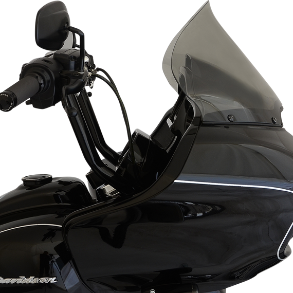 Caracteristicas: The Pro-Touring Flare™ is a wider, more full-coverage option for riders and passengers that prefer an even greater amount of wind protection for the long haul and is stylish enough to use around town The patented design features "hips" at the sides that re-route the wind away from riders while adding downforce to the front-end of the motorcycle to improve stability vs. riding with the stock windshield The flip at the top of the Flare™ redirects air back as clean, less turbulent air for rider and passenger Wind tunnel designed and tested Lexan® Polycarbonate with FMR hard coating is used to create these custom-molded designs with unmatched durability All are predrilled for easy mounting using stock windshield hardware Made in the U.S.A.