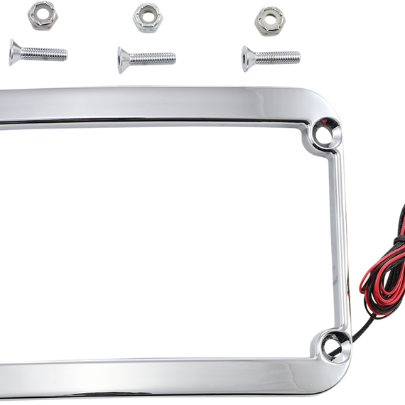 Caracteristicas: Klock Werks license plate frames are designed to fit the radius of our stamped steel rear fenders perfectly. Includes built-in LED’s and wiring Frames are easy to install, include mounting hardware, and accept most 4" x 7" license plates (trimming may be required) Can also be used in custom applications