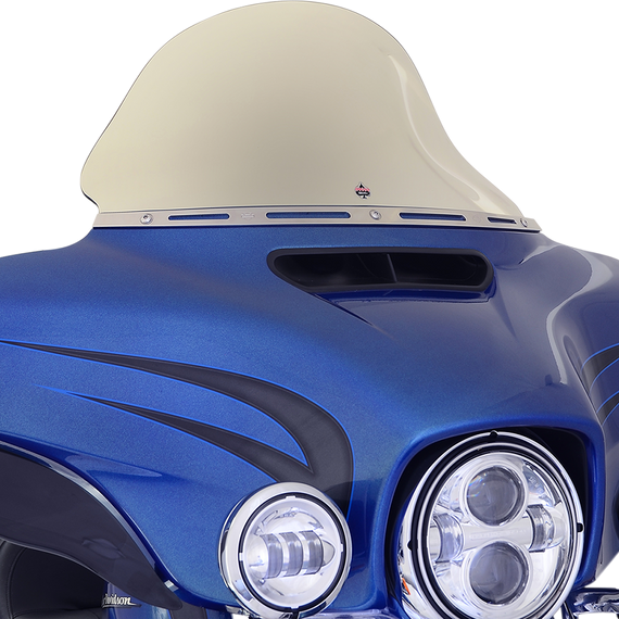• Wind tunnel designed and tested, the "hips" provide added downforce while the flip at the tip directs air over the rider to help eliminate the swirl of air found in front of the rider on standard windshields
