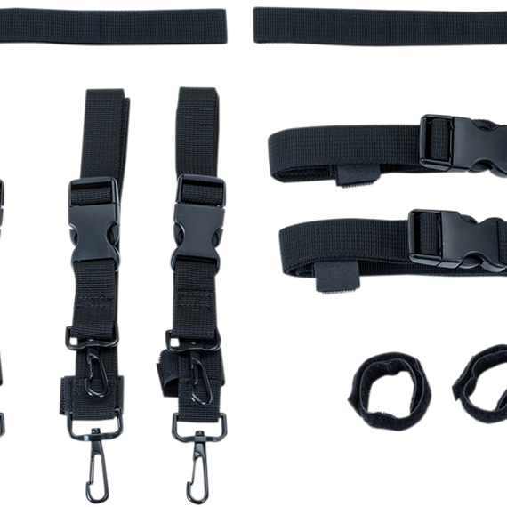 Caracteristicas: Works with all Kuryakyn and XKursion® luggage Includes four double-snap hooks, two single-snap hook straps with a pull-through loop, two hook-and-loop straps, and two hook-and-loop snap straps