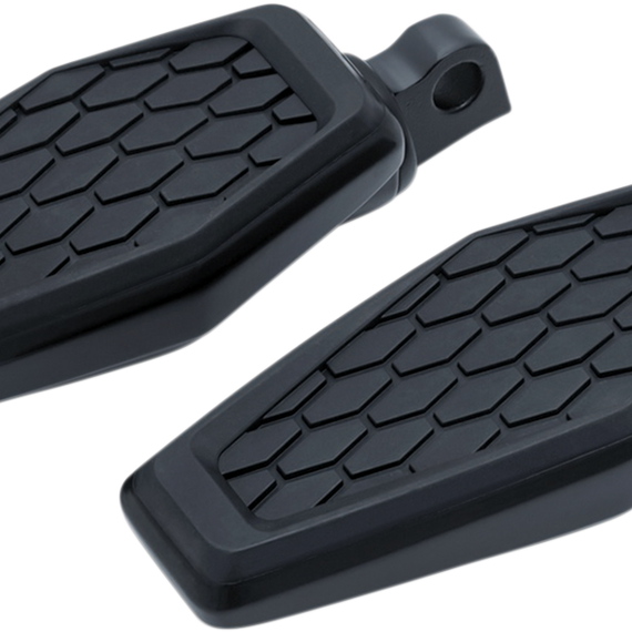 Caracteristicas: Hex pegs are a perfect blend of form and function Heavy-duty aluminum housings showcase an angular design with smooth beveled edges that provide depth Premium EPDM rubber inserts feature the same geometric pattern to deliver traction, style, and vibration-dampening comfort A380 aluminum housings Durable EPDM Rubber inserts will not harden, crack or wear over time Styled to match the complete line of Kuryakyn Hex accessories Pegs with male-mount splined adapters are direct replacements for most H-D models