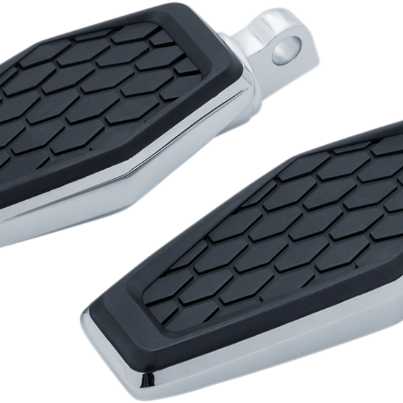 Caracteristicas: Hex pegs are a perfect blend of form and function Heavy-duty aluminum housings showcase an angular design with smooth beveled edges that provide depth Premium EPDM rubber inserts feature the same geometric pattern to deliver traction, style, and vibration-dampening comfort A380 aluminum housings Durable EPDM Rubber inserts will not harden, crack or wear over time Styled to match the complete line of Kuryakyn Hex accessories Pegs with male-mount splined adapters are direct replacements for most H-D models