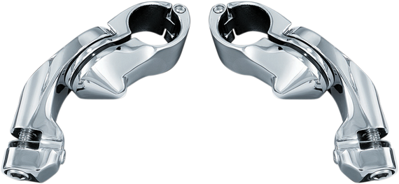 Caracteristicas: Now you can easily mount cruise pegs on Dresser/Touring models with highway bars and fairing lowers Special clamp interfaces with an offset arm to reach around the bike's lowers Entire assembly can be moved up or down on the engine guard or frame tubes Arm of the foot peg can be further adjusted along a vertical or horizontal arc Unique clevis permits angle adjustment of the foot peg Mount fits 1-1/4" diameter engine guards or frame tubing