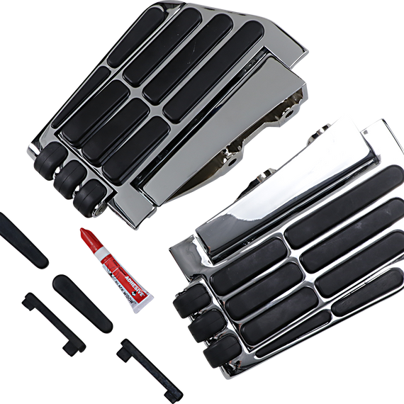 Caracteristicas: Highly chromed floorboards that offer style, function and comfort Direct replacements for OEM floorboards that install in minutes Retractable folding arm deploys a hidden footrest for an alternate foot position 4" higher and 5" farther forward than the stock position