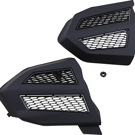 Caracteristicas: Features stylized mesh inserts that mimic the stock fairing grilles for a cohesive look throughout Conceals the engine and transmission cases with mesh grilles for airflow/heat dissipation Made from durable lightweight ABS Styled to mimic the OEM/Stock mesh grilles in the fairing for a clean look Includes hardware for easy bolt-on install