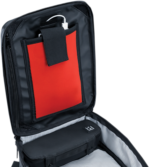 Caracteristicas: Dims: 8.5" wide x 11.25" deep x 4" tall Cubic Inches: 382 Liters: 6.25 Convenient tablet/GPS storage for all your mobile needs, fitting up to a 12" device Clear, touchscreen-compatible outer panel for easy device operation without removal Low profile silhouette works with most tank styles and maintains gauge visibility Thermoformed sunglass tray for secure storage Non-slip/scratch base with quick magnetic tank mounting, plus additional strap kit for non-magnetic tanks Detaches from mounting base and integrated carrying handle offers easy transport off the bike Audio jacks and outlets for headphones or device charging Removable sun shade helps prevent device overheating from sun exposure Laser-cut low-profile MOLLE for modular attachment options Includes rain cover with waterproof clear screen for viewing GPS or tablet