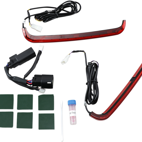 Caracteristicas: Low Profile BAGZ™ have been designed with a sleek low-profile design Utilizing super bright red LEDs behind a red or smoked lens to provide contrasting red running light with full intensity brake light to the OEM hard saddlebags Low Profile BAGZ™ come pre-taped and include a plug and play wiring adapter for an effortless install