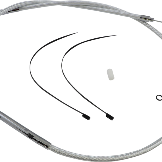Caracteristicas: Sterling Chromite® II uses patented technology to look like chrome Braid color and weave match on all Magnum control cables and brake lines Coated with a non-yellowing, crystal clear FEP fluoropolymer outer jacket for exceptional protection against scuffing paint or chrome Low-effort, high-efficiency cable design meets or exceeds all OE specifications for fitment, construction, and endurance All fittings are polished and chrome plated Attractive adjuster with integrated water resistant seals does not require a boot Rubber seal in transmission fitting eliminates fluid leaks All cables are factory lubricated for smooth, consistent, long-lasting operation Assembled in the U.S.A. Late style cables are measured with the adjuster completely collapsed