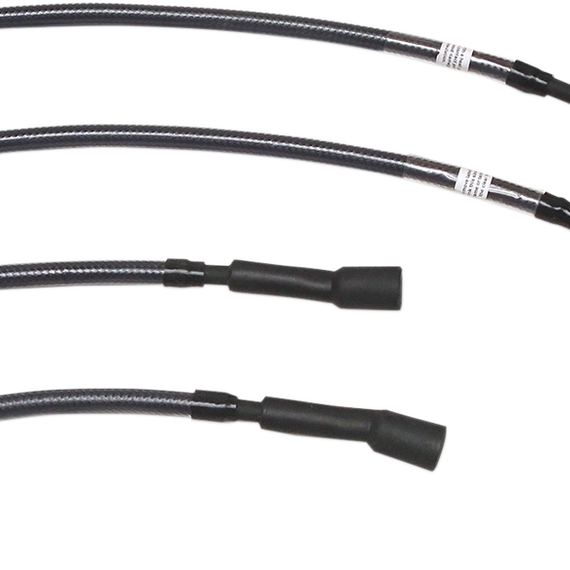 Caracteristicas: Braid perfectly matches all other MAGNUM cables and brake lines High-voltage, high temperature 8mm silicone ignition wire with an OE style, high-performance suppression conductor core for compatibility with all H-D ignition systems Heavy walled extreme duty crystal clear FEP Fluoropolymer outer insulation eliminates the need for grounding wires and insures no interference with late model computer modules. Stainless steel posi-lock terminals and silicone boots ensure maximum performance and clean spark delivery. Direct fitments for ease of installation