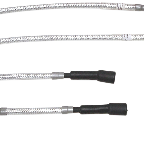 Caracteristicas: Braid perfectly matches all other MAGNUM cables and brake lines High-voltage, high temperature 8mm silicone ignition wire with an OE style, high-performance suppression conductor core for compatibility with all H-D ignition systems Heavy walled extreme duty crystal clear FEP Fluoropolymer outer insulation eliminates the need for grounding wires and insures no interference with late model computer modules. Stainless steel posi-lock terminals and silicone boots ensure maximum performance and clean spark delivery. Direct fitments for ease of installation