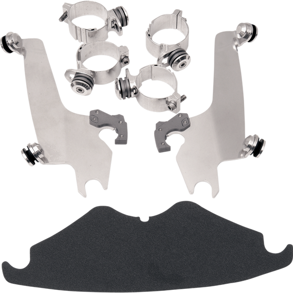 Caracteristicas: Gone are the days of fumbling with tools to remove your windshield The revolutionary No-Tool Trigger-Lock hardware features an innovative system that allows you to quickly and easily remove your windshields without the use of any tools A pair of latches lock the windshield down until the spring loaded "trigger locks" are intentionally disengaged, allowing the rider to remove the windshield Hardware is fully adjustable to achieve just the right windshield angle Kits are custom-fit to each style of bike for a truly no-hassle installation Made in the U.S.A.