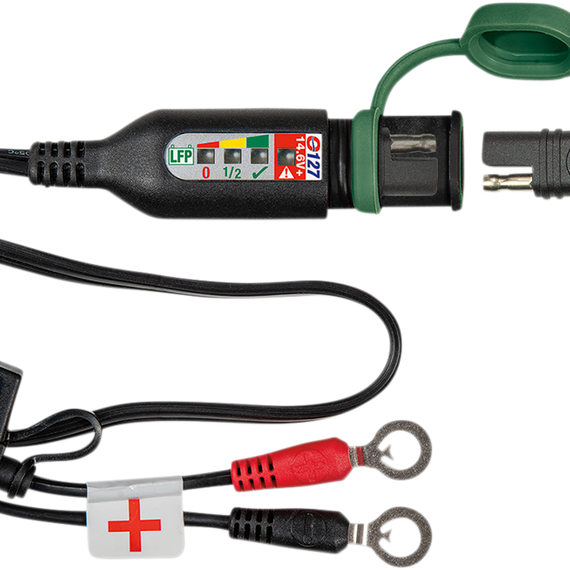 Caracteristicas: Permanent battery leads with integrated battery status/charge system monitors for 12V lead-acid batteries or lithium batteries Monitor charge or confirm if the charging system is working correctly SAE charge port with weatherproof sealing cap Two automatic modes: battery charge level monitor and charging system test