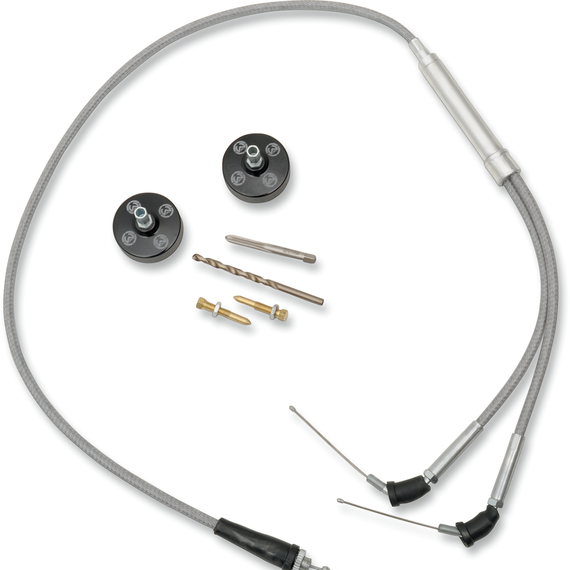 • Includes a stainless steel braided cable and Mikuni-style idle adjustment screw