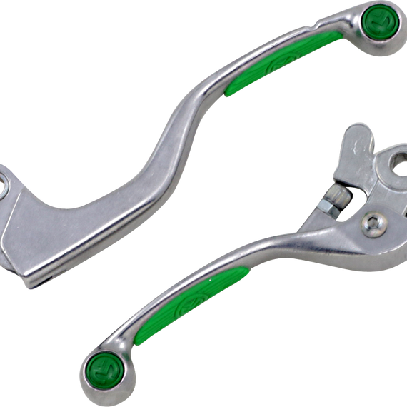 Caracteristicas: Cast aluminum lever sets with silicone grip inserts and anti-friction bronze bushings High-quality polished cast aluminum construction Levers approximately 1" shorter than OEM Compatible with OEM or Moose Racing perches Sold in pairs (1 brake lever and 1 clutch lever)
