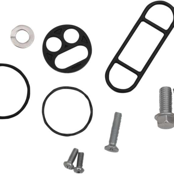 Caracteristicas: Includes components to rebuild one fuel petcock Kits include all necessary face screws, tank bolts, face gasket, tank gasket, diaphragm, o-rings, wave washer, and misc components