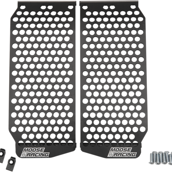 Caracteristicas: Protect the front of your radiators from an impact or flying debris Made from 3/16” aluminum Support rods welded on to attach to your Moose Radiator Braces (sold separately) Easy to clean up Made in the U.S.A.