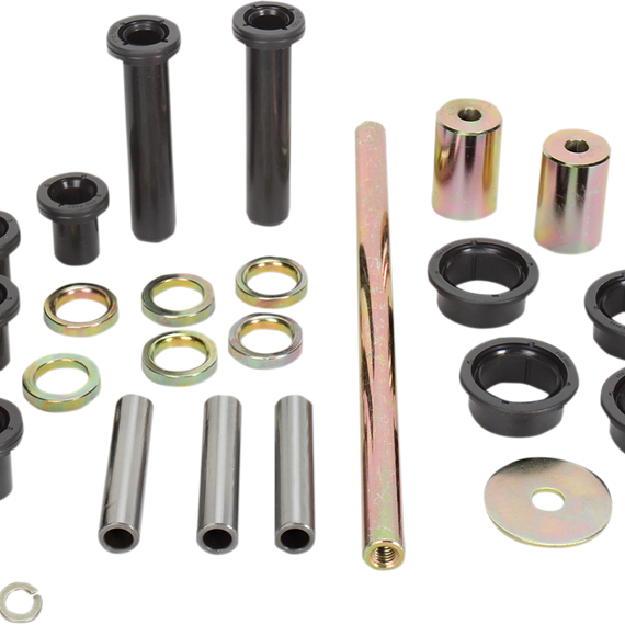 Caracteristicas: Cost-effective kit containing all bearings, bushings, seals, shafts and miscellaneous components to repair the rear upper and lower A-arms and knuckle Two kits required per vehicle