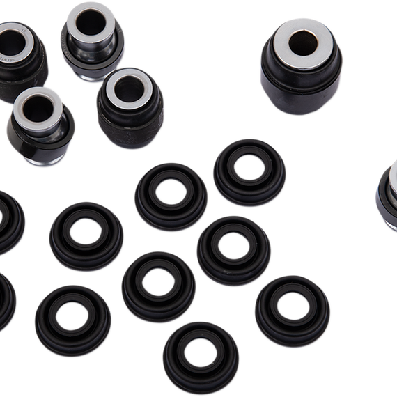Caracteristicas: Cost-effective kit containing all bearings, bushings, seals, shafts and miscellaneous components to repair the rear upper and lower A-arms and knuckle Two kits required per vehicle