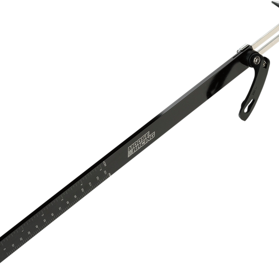 Caracteristicas: Fully adjustable scale and tapered axle pin to fit mini- and big-bike axles Quick-release setscrew for convenient tightening Standard and metric measurements Telescoping design for easy storage in tool boxes