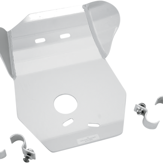 Caracteristicas: Protect vital engine parts and cases from rocks and debris Clear anodized for corrosion protection and good looks Skid plates made from 3/16" 5052 H-32 aluminum Smooth underside won't snag when crossing logs Oil drain hole on all required models Heat-treated chromoly steel clamps keep plates mounted securely All mounting hardware included Made in the U.S.A.