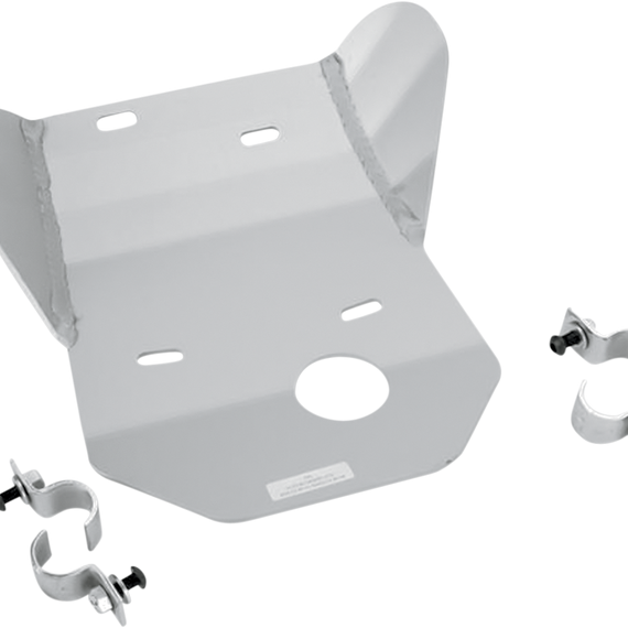 Caracteristicas: Protect vital engine parts and cases from rocks and debris Clear anodized for corrosion protection and good looks Skid plates made from 3/16" 5052 H-32 aluminum Smooth underside won't snag when crossing logs Oil drain hole on all required models Heat-treated chromoly steel clamps keep plates mounted securely All mounting hardware included Made in the U.S.A.