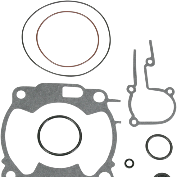 Caracteristicas: Moose can now handle all your gasket and seal needs at a fraction of OEM cost High-tech materials provide unmatched reliability and performance Rebuild the engine and transmission with total confidence as each set is designed for durability and accurate fit Oil seals are genuine OEM replacement seals Performance sets designed for a piston replacement Includes every gasket, O-ring and seal required to rebuild a top end; valve seals, head, base, exhaust, tensioner, and other misc. gaskets and O-rings Does not include formed rubber valve cover gasket Formed valve cover gaskets are included in complete kit with oil seals High-compression kits use .012" thick base gaskets to raise compression Cost-effective way to raise compression without expensive high-compression pistons or cylinder head work All gaskets made in the U.S.A.