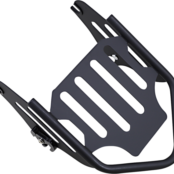 Caracteristicas: Fits Harley Davidson Touring Models with a 4-point docking hardware kit Carrying Surface: 10" x 10" Mounting Distance: 9 3/4" (measured from inside to inside of the mounting plates) Materials: 3/4" steel tubing, 16 gauge Steel Carrying Limit: 10 lbs Comes with Rotary Latches installed and ready to install onto the bike Must have a 4-point Docking Hardware Kit for proper installation Made in the USA