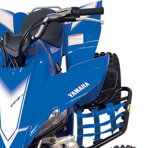 Caracteristicas: Manufactured from lightweight 1-1/4" extruded aluminum tubing Custom EZ-fit clamp brackets with silver anodized finish Wide 1-1/2" black webbing with beefy aluminum net tabs Sweep up from front to the rear for maximum ground clearance Maximum width of 50" to comply with ATVA rules Allows the use of OEM heel plate/fender extensions