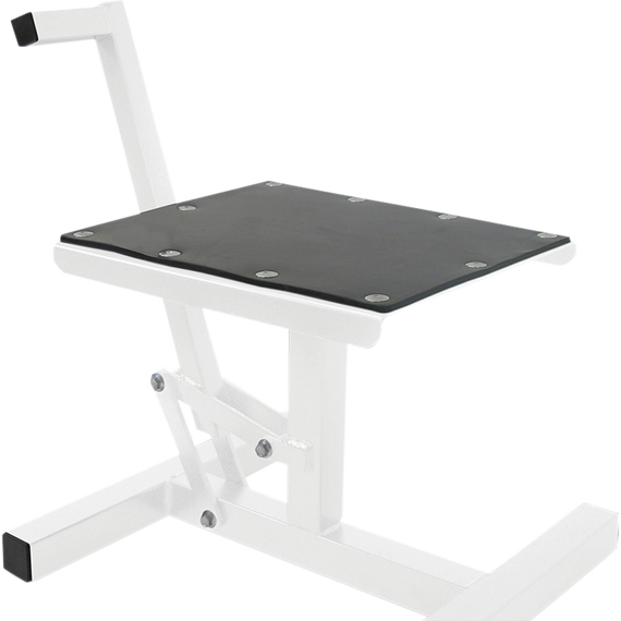 Caracteristicas: Lifts both wheels of bike off the ground when in raised position Lowers easily by lifting foot pedal with foot Finished with rubber end caps installed on all box tubing ends 14" x 15" H-shaped base for maximum stability Lowest height is 11-1/4" Weighs only 14 lb.