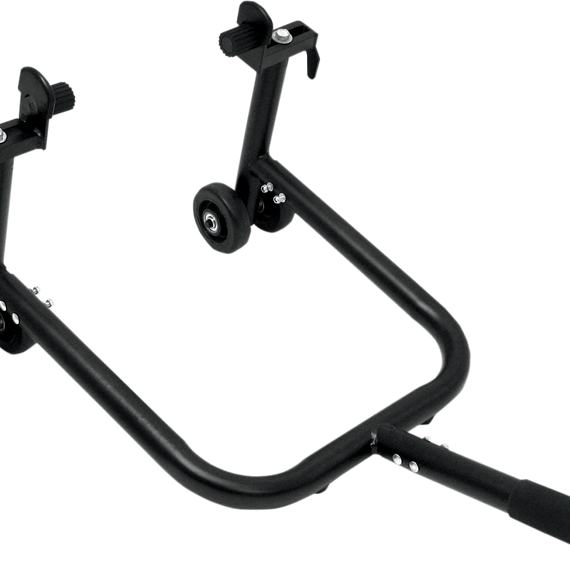 • Wide frame design allows stand to lift rear of sport bike with or without spools incorporated; simply unbolt and flip hardware over to desired setting (spools or rubber paddles)