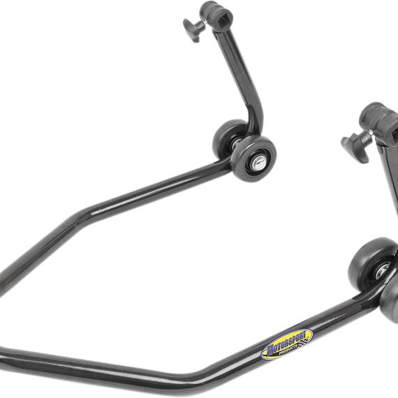 Caracteristicas: Universal rear sport bike lift stand Sturdy frame includes four solid urethane wheels with sealed roller bearings, providing a smooth and easy transition when lifting bike Width adjusts quickly and easily without the use of tools
