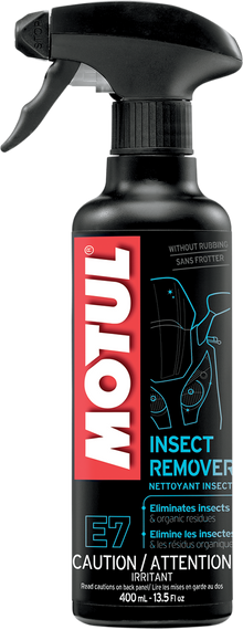 Caracteristicas: Use to remove splattered insects and organic residue, including bird droppings Works on windscreens, fairings, paint, metal, mirrors and motorcycle plastics Available in 400mL spray bottles