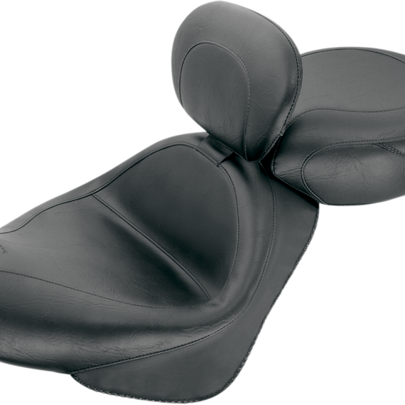 Caracteristicas: Deeply contoured front bucket; passenger seat angles forward to support the rider's back Premium-quality, expanded vinyl cover Built-in steel support wings in the passenger seat Vintage has no studs or conchos for a clean, smooth look Made in the U.S.A.