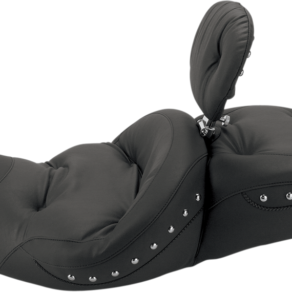 Caracteristicas: Super comfortable touring design provides rider and passenger with the fullest, most comfortable seat possible Seat is 1.75" further back than stock Includes receiver for optional driver backrest (backrest must be purchased separately) Expanded vinyl cover Made in the U.S.A. Will fit with a handrail.