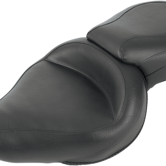 Caracteristicas: Front bucket is trimmed with a functional skirt that comes down over the frame and fender for a clean, uninterrupted look Vintage cover is made from highest quality expanded vinyl Passenger seat angles forward to support the rider's back Built on a single-piece steel base that fits like stock Made in the U.S.A.