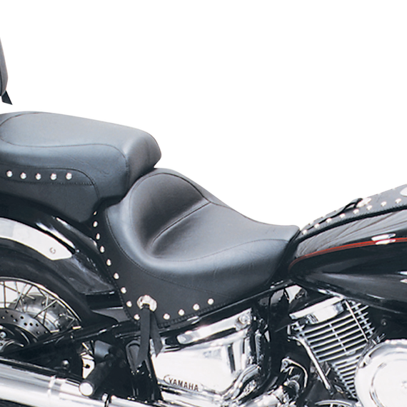 Caracteristicas: Deeply contoured front bucket; passenger seat angles forward to support the rider's back Premium-quality expanded vinyl cover Built-in steel support wings in the passenger seat Backrest folds completely forward for ease of getting on motorcycle Rounded thumb screw adjusts backrest forward and back up to 2" while you are seated Made in the U.S.A.