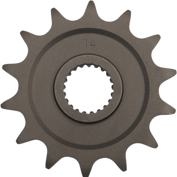 Caracteristicas: All our front sprockets are manufactured to OEM specs using high-grade hardened steel for long life All match original equipment exactly and feature precision-machined splines and teeth for a perfect fit