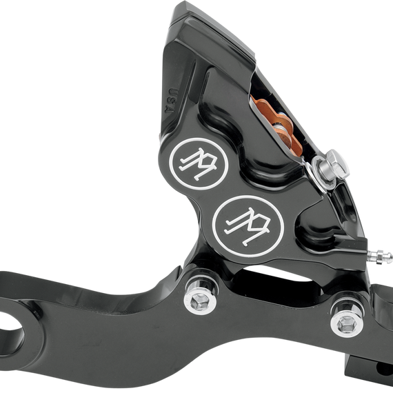 Caracteristicas: Precision machined from billet aluminum Four-piston dual-action design for positive stopping power Include mounting bracket, brake pads, bleeder screw and 3/8"-24 banjo bolt Made in the U.S.A.