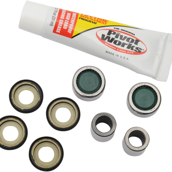 • Some shock absorbers on Kawasaki and Honda models use a clevis to connect shock to the linkage. The bearing, collar and seals that are pressed into the linkage arm are included in the Pivot Works Shock Kit.