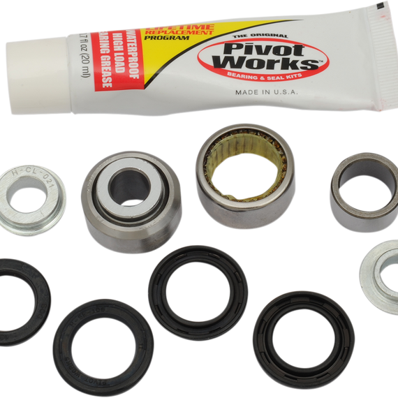 • Some shock absorbers on Kawasaki and Honda models use a clevis to connect shock to the linkage. The bearing, collar and seals that are pressed into the linkage arm are included in the Pivot Works Shock Kit.