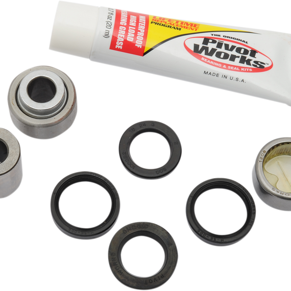Caracteristicas: Kit contains two PTFE spherical bearings (cup bearings when used), four seals and related components Each shock kit rebuilds both ends of the shock absorber Some shock absorbers on Kawasaki and Honda models use a clevis to connect shock to the linkage. The bearing, collar and seals that are pressed into the linkage arm are included in the Pivot Works Shock Kit.