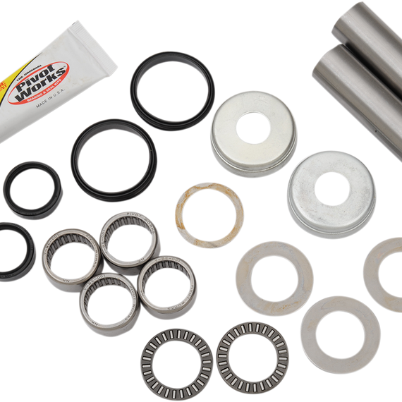Caracteristicas: Restore handling and suspension control lost due to worn or rusted swingarm components Convenient kit eliminates looking up many part numbers Each kit contains bearings, pins, collars and seals manufactured to OEM specifications for a perfect fit Considerable savings over OEM prices