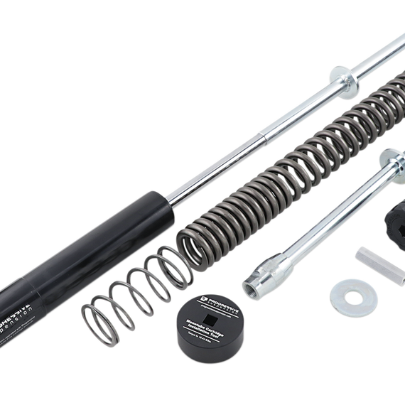 Caracteristicas: Converts dual damper rod forks to high-performance cartridge forks Contains a pair of high-performance, gas-charged mono-tube fork cartridges and custom-tuned fork springs Improves resistance to front brake dive, front end stability, cornering and bottoming control No modification for forks required Lowering kit lowers the front up to 2" Made in the U.S.A. Not for use on LOW models.