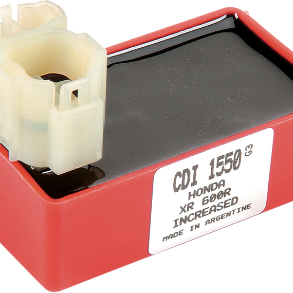 Caracteristicas: CDI box enhancements include one or more of the following: multiple spark, increased rpm redline or altered ignition advance curves Advance curve allows ATV to rev at higher rpm and quicker rate Also may be used to replace defective CDI box on stock machines