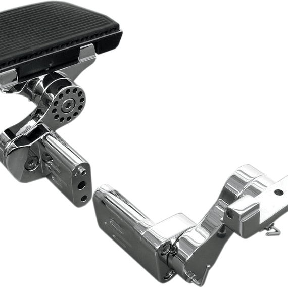 Caracteristicas: Accept either stock Harley-Davidson® floorboards or any direct-fit accessory floorboard (floorboards not included) The ultimate in passenger comfort; movement of the boards forward eliminates the problem of passenger's calves pressing against the saddlebag/guard rail and greatly increase foot and leg support over stock boards Adjusts in seconds to 12 different positions through a 9" range of motion; simply pull out spring-loaded lock pins, then move the board up or down until pin clicks into next position; no tools required Made in the U.S.A.